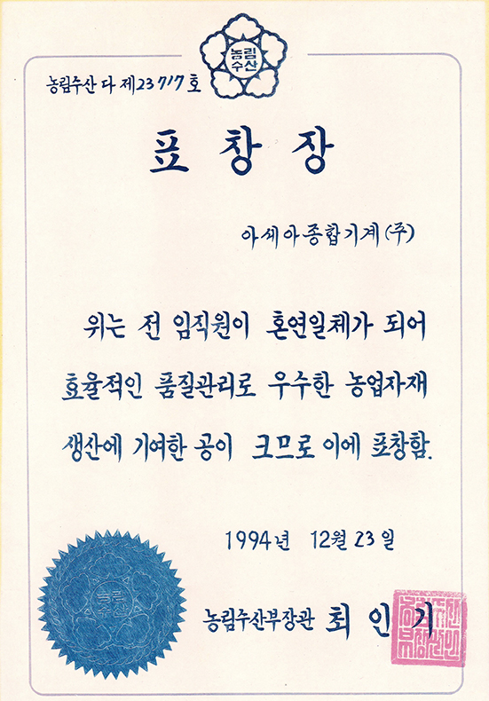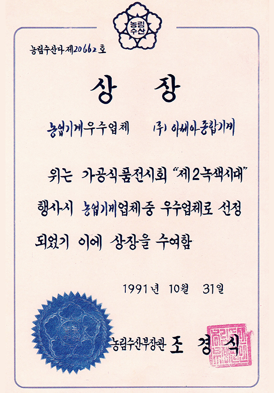Award certificate