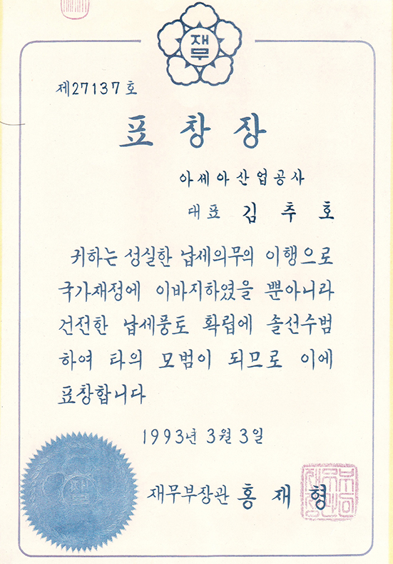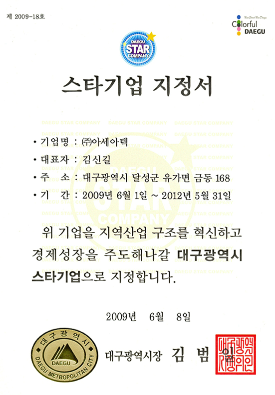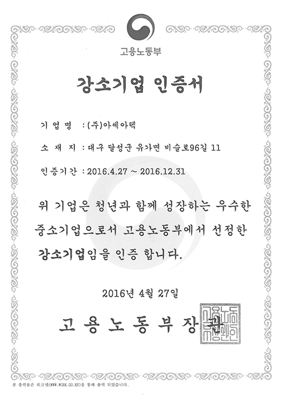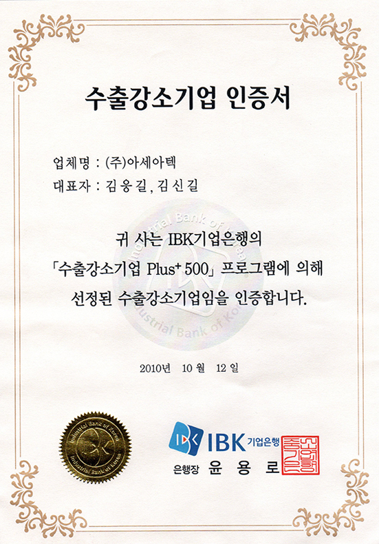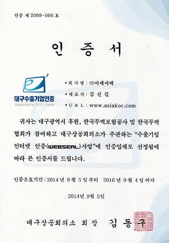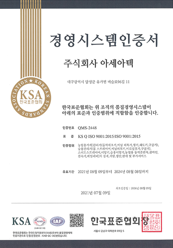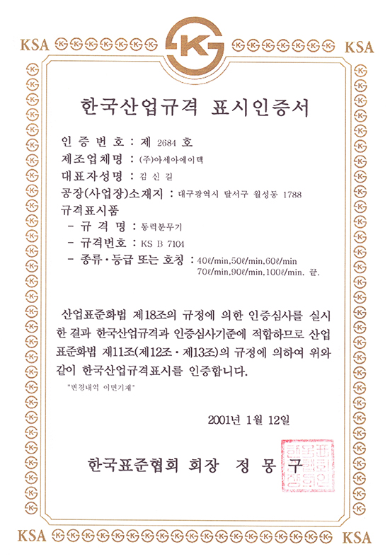 Korean industrial standard mark certificate