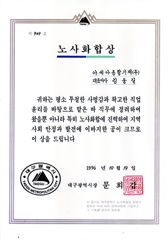 Labor-management harmony award
