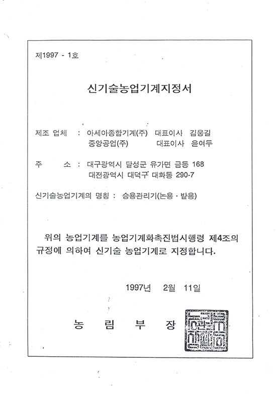 New technology agricultural machinery designation