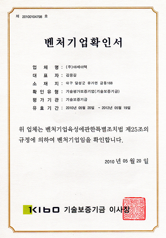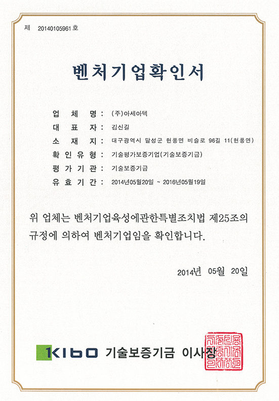Venture company confirmation